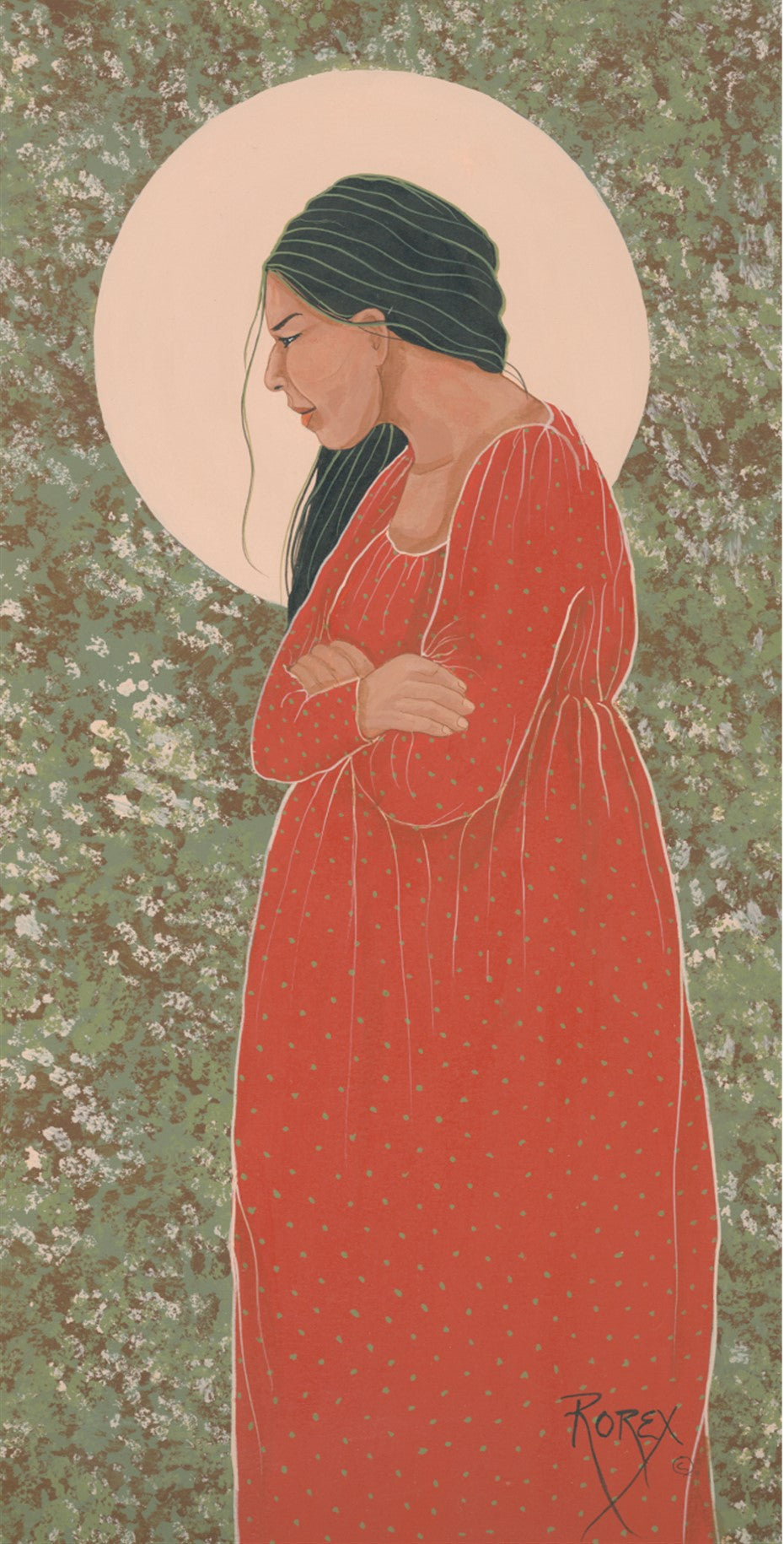A young woman in her early months of pregnancy, waiting for her husband to return— making for a very long night.