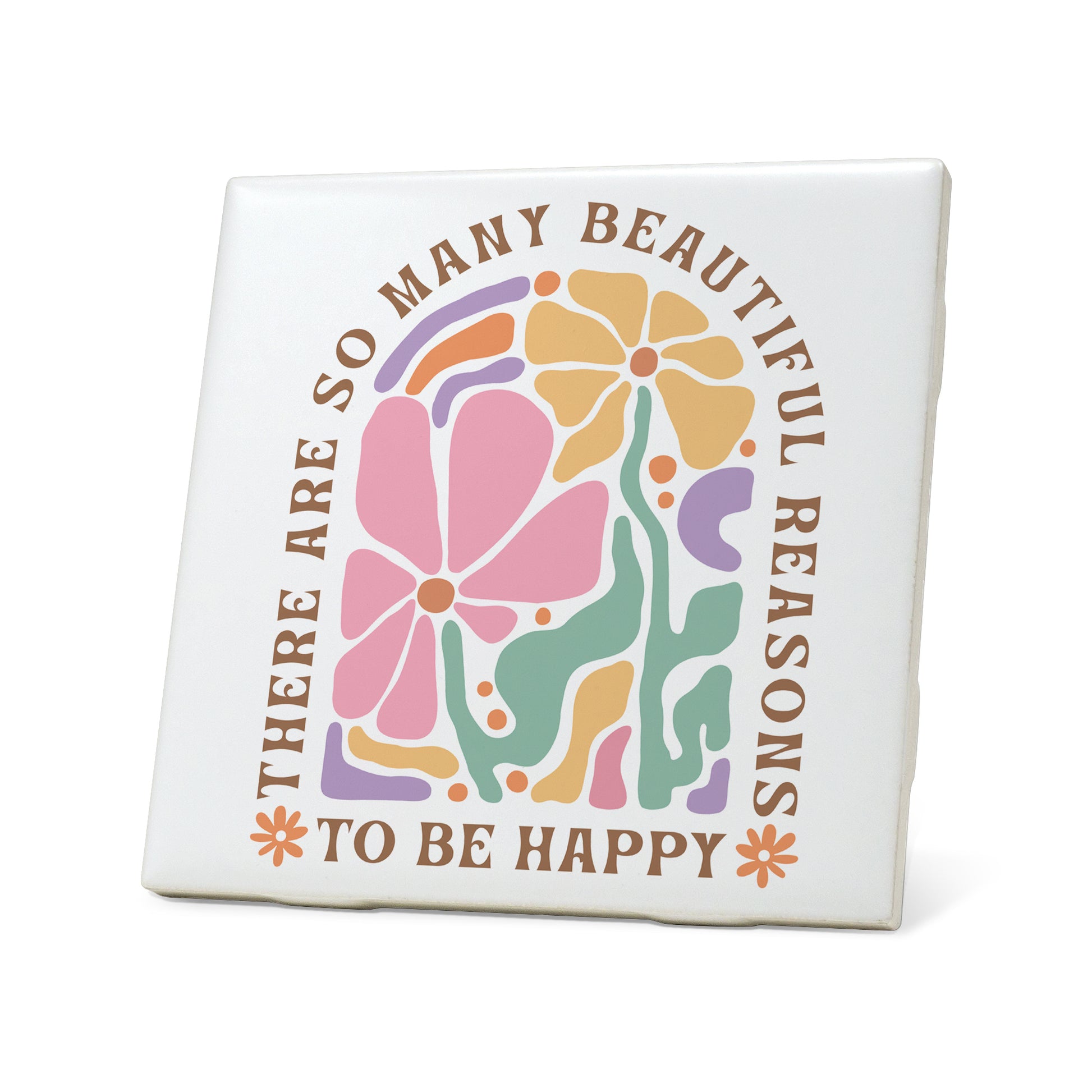 Ceramic has a satin finish with a cork backing. Dimensions: 4.25" x 4.25"