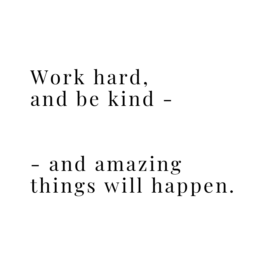 Work Hard And Be Kind And Amazing Things Will Happen."