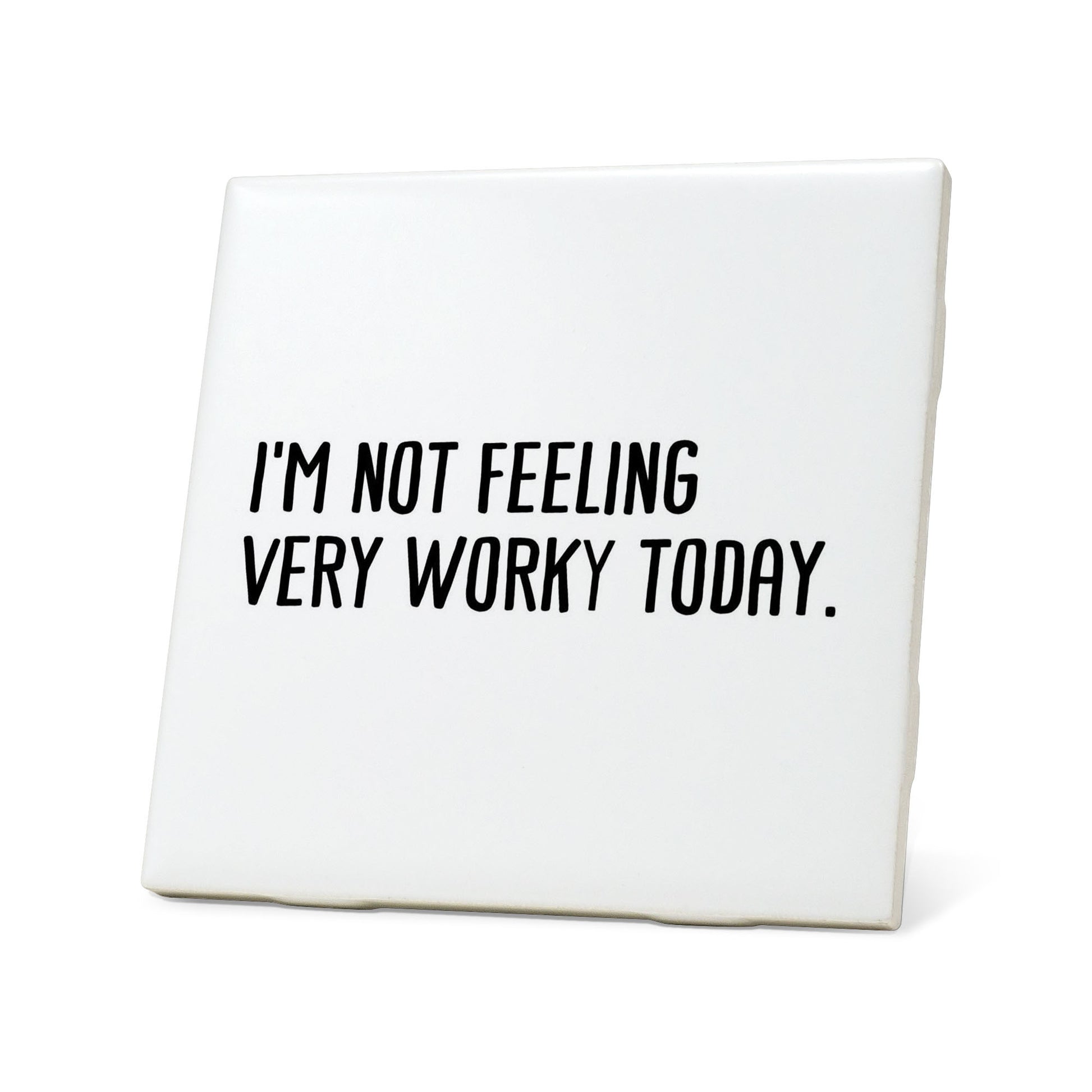 Ceramic has a satin finish with a cork backing. Dimensions: 4.25" x 4.25"
