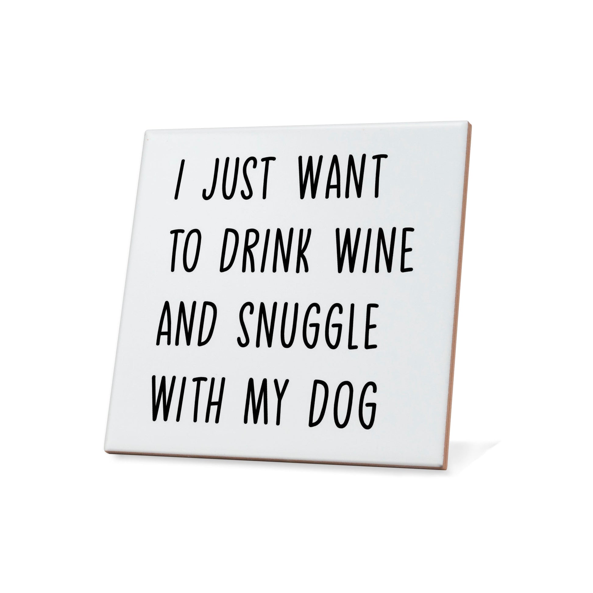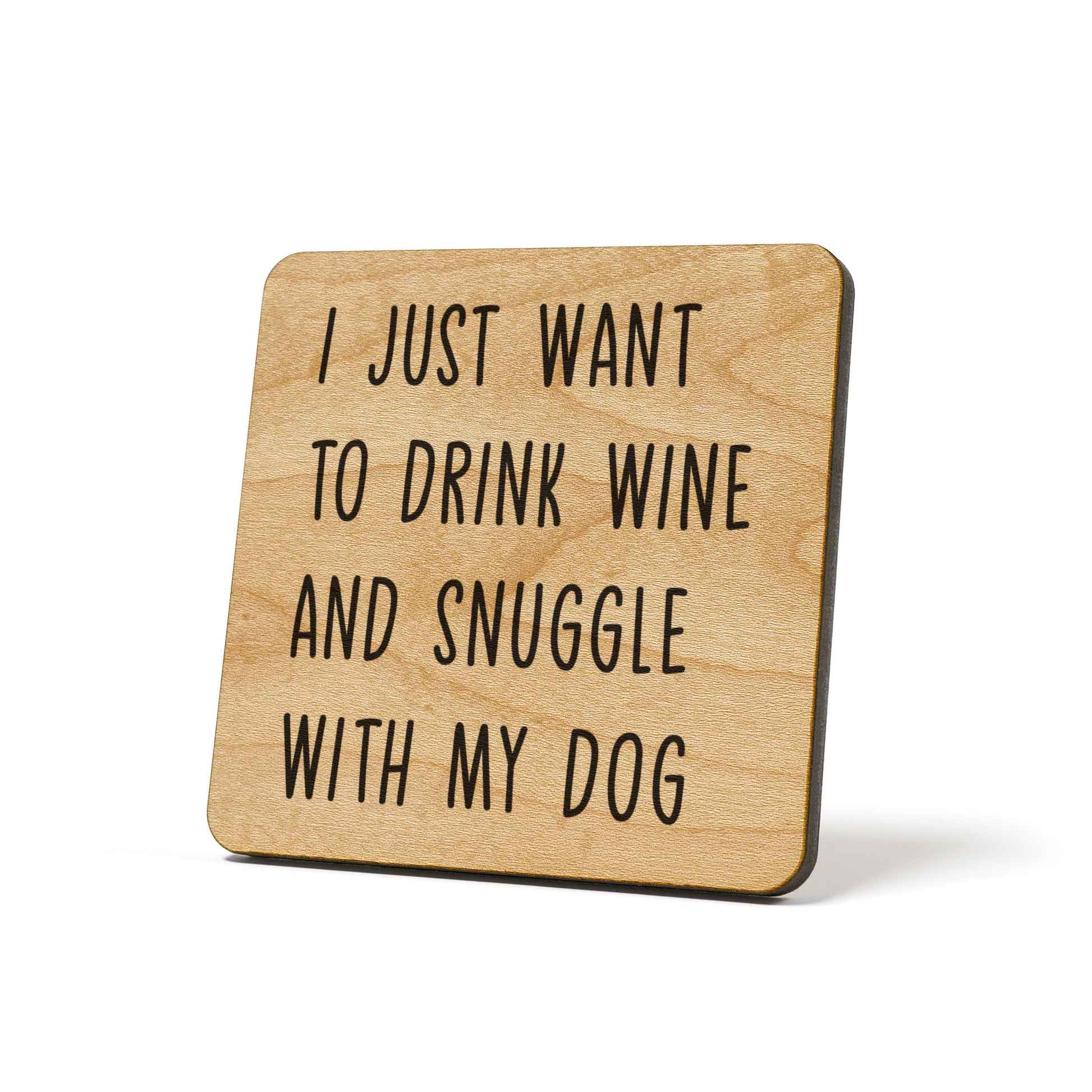 Drink Wine And Snuggle With My Dog Quote Coaster