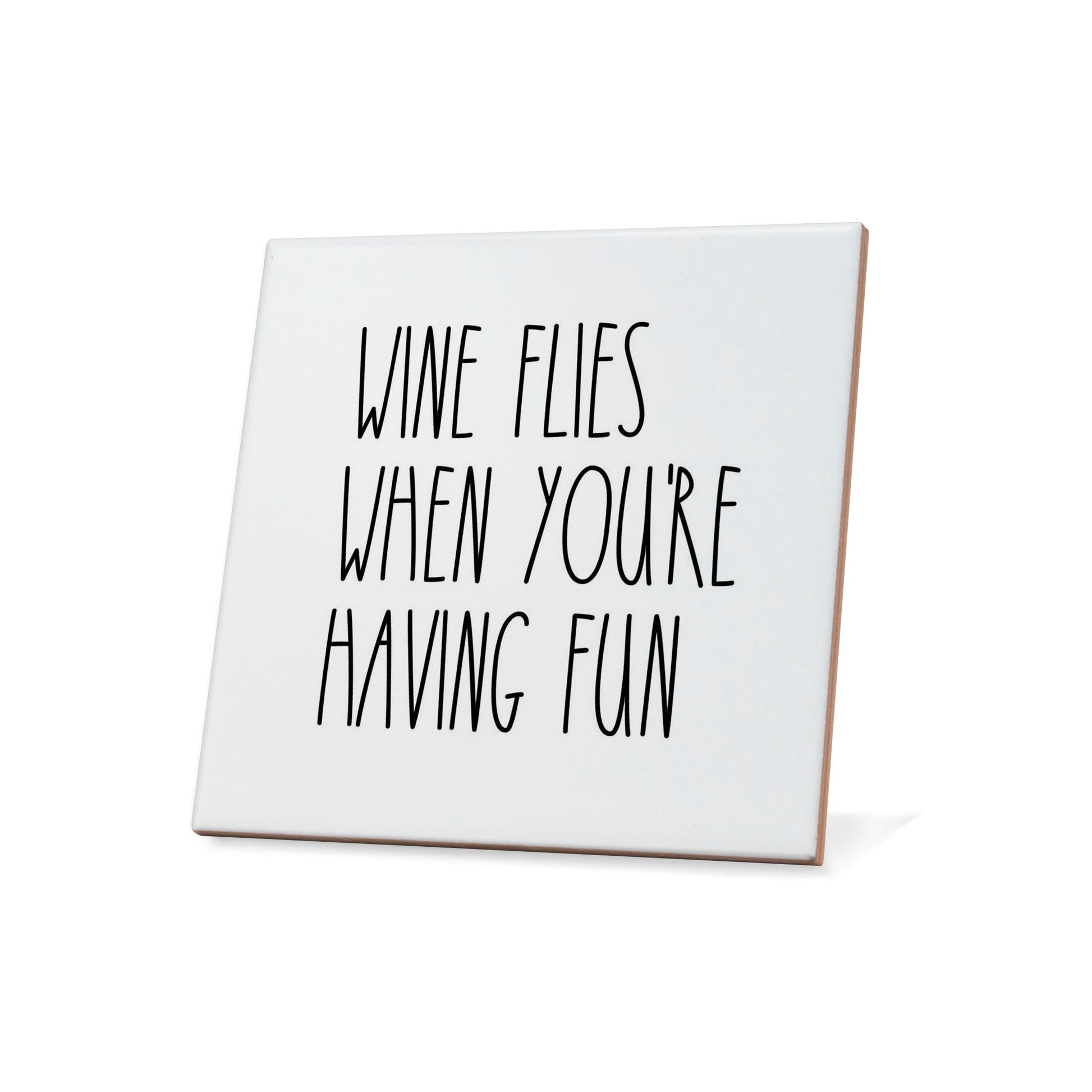 Wood has a satin finish with a magnet backing which can be used as a coaster or a magnet. Dimensions: 3.5" x 3.5"