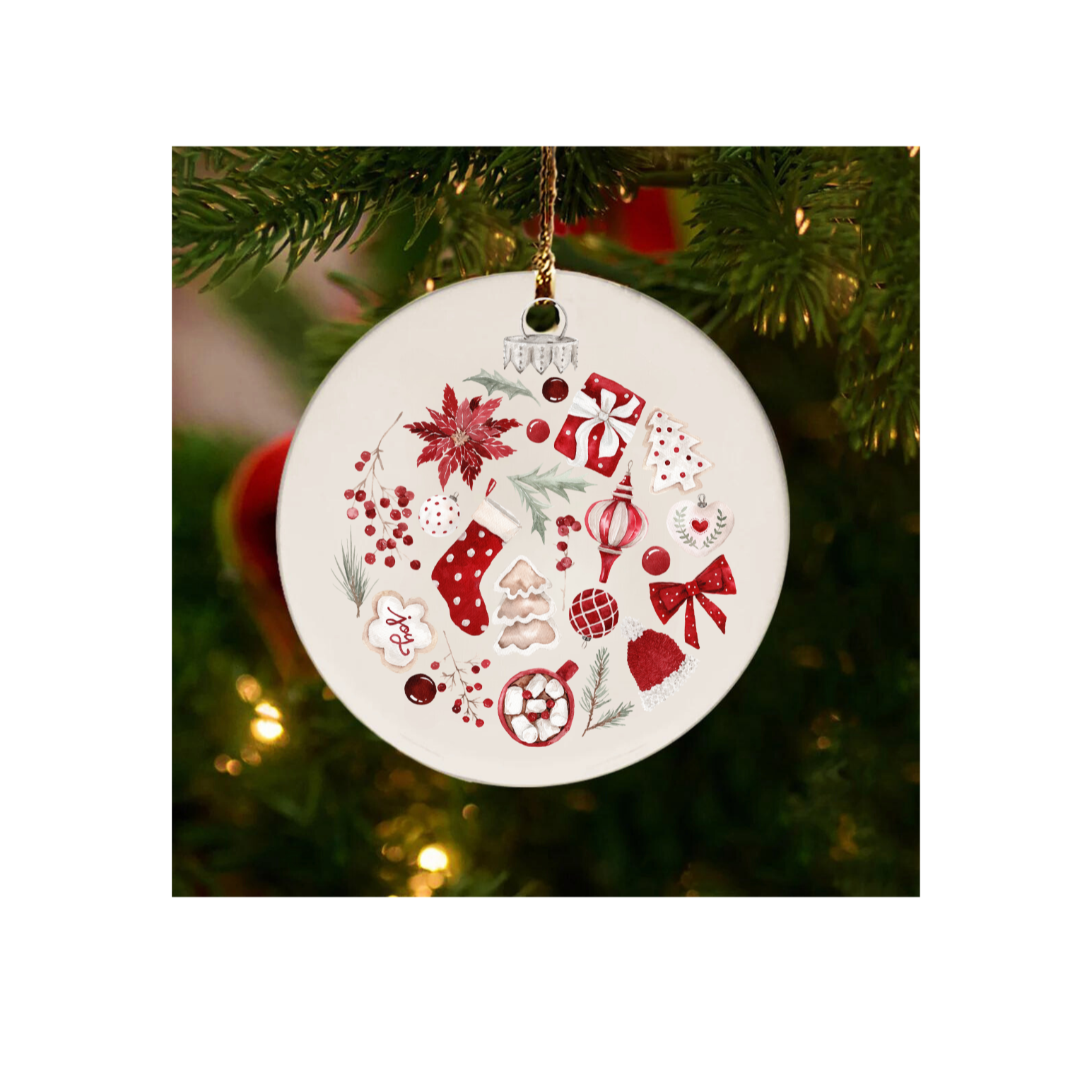 This 3" round ceramic ornament is the perfect addition to any holiday tree! With our ceramic ornaments, we are pleased to offer you a gift box at no additional charge. It's a cute brown box tied with a silver ribbon - super cute for Christmas!