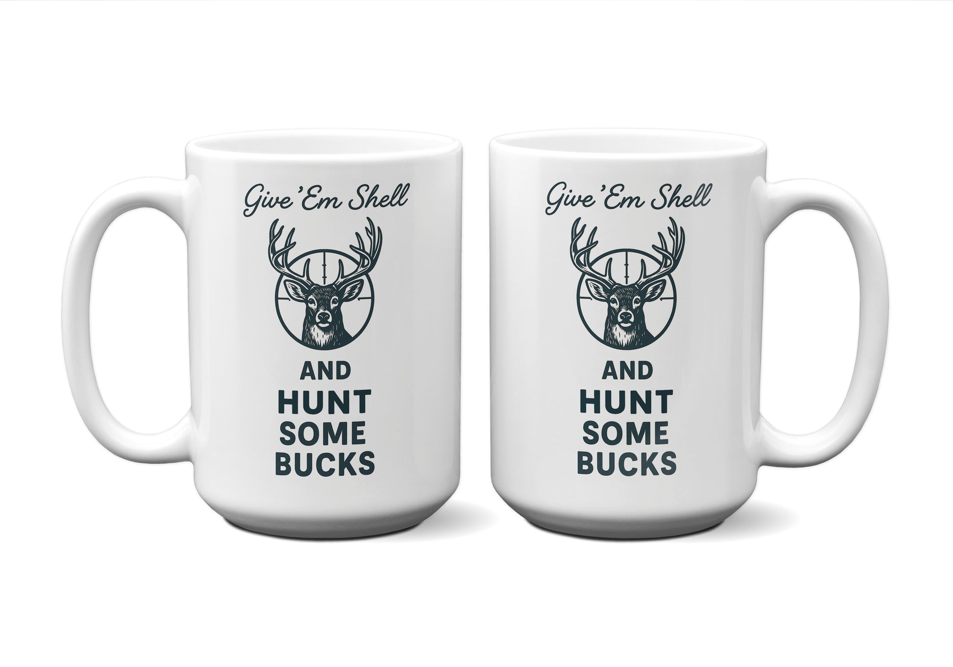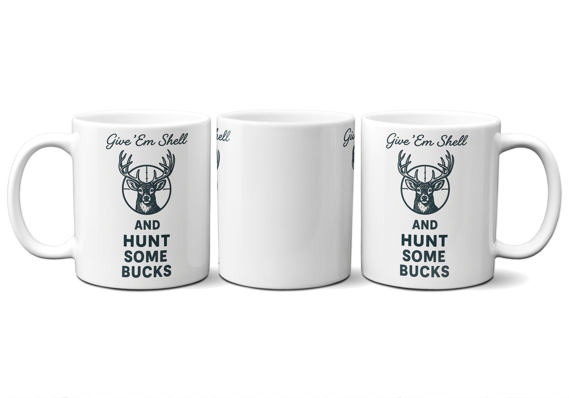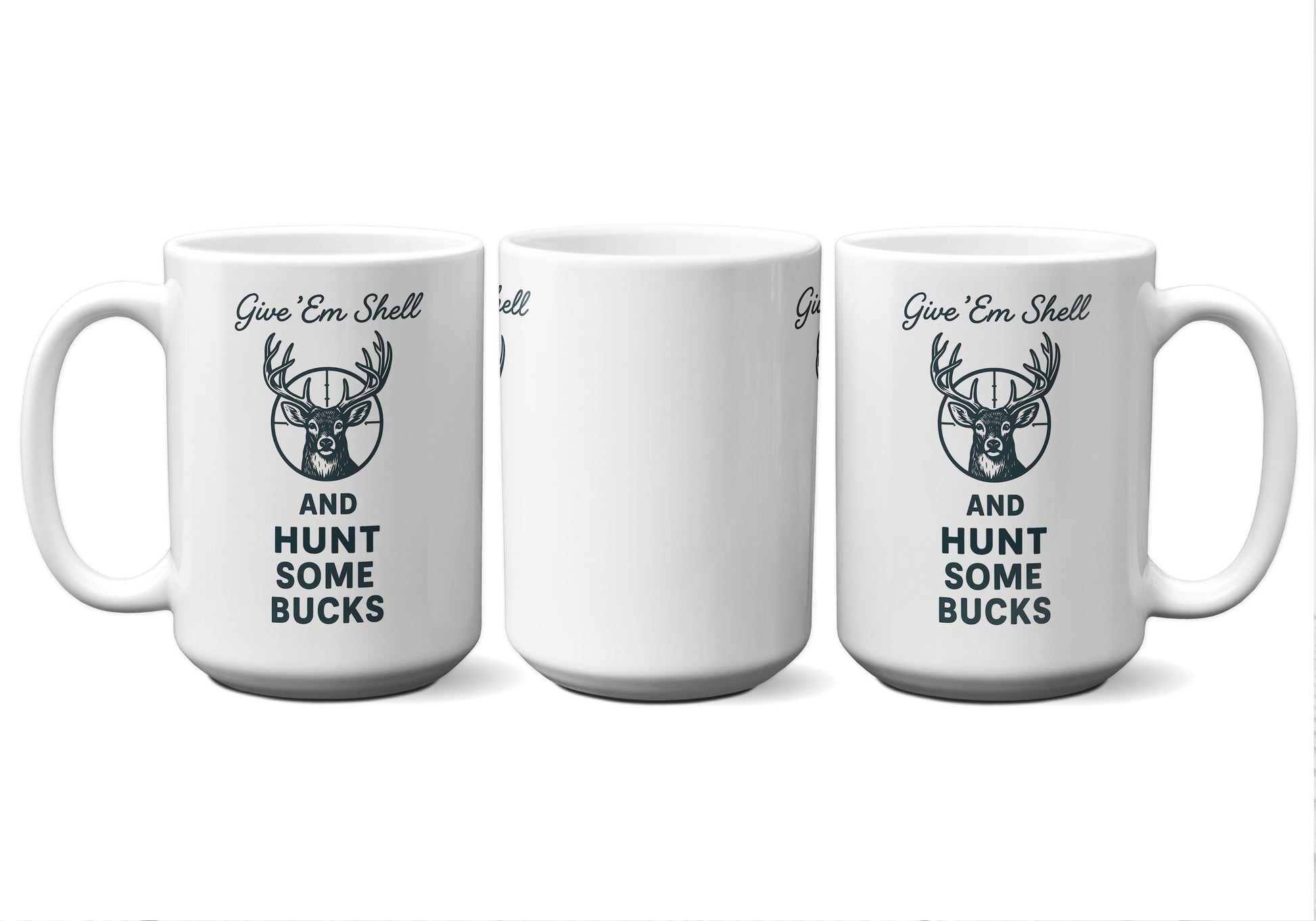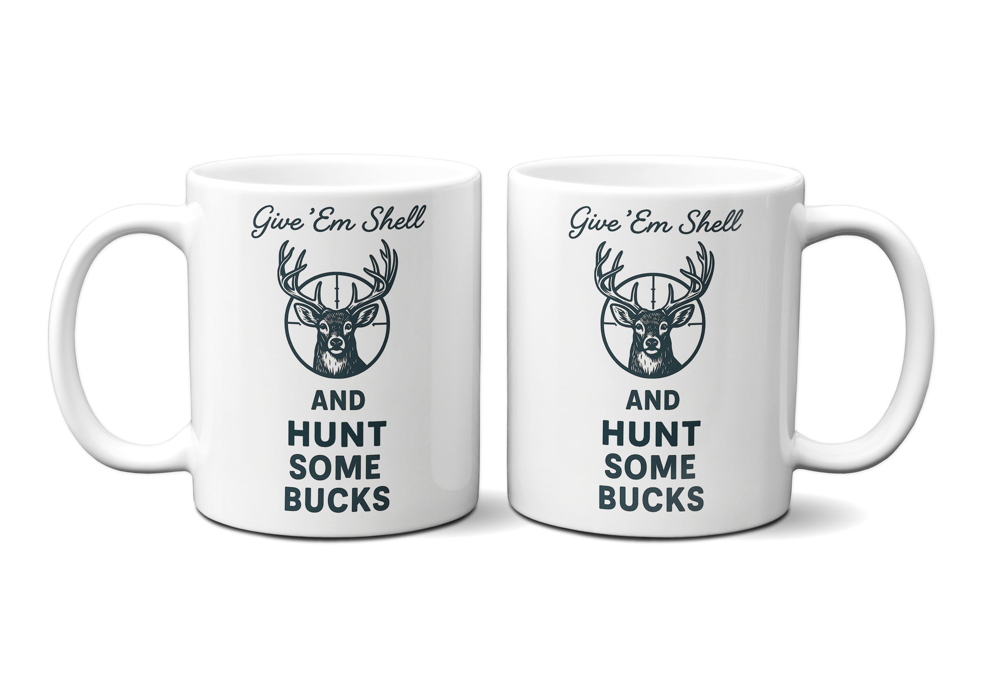 Gear up, stay sharp, and savor the moment with the Give ’Em Shell and Hunt Some Bucks Graphic Mug—a bold reminder that good days start with good coffee and a little adventure.