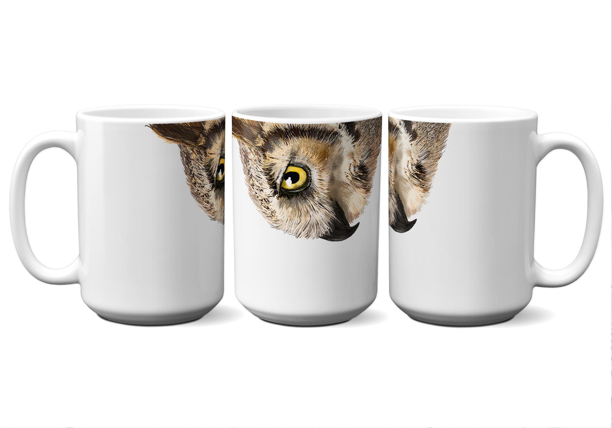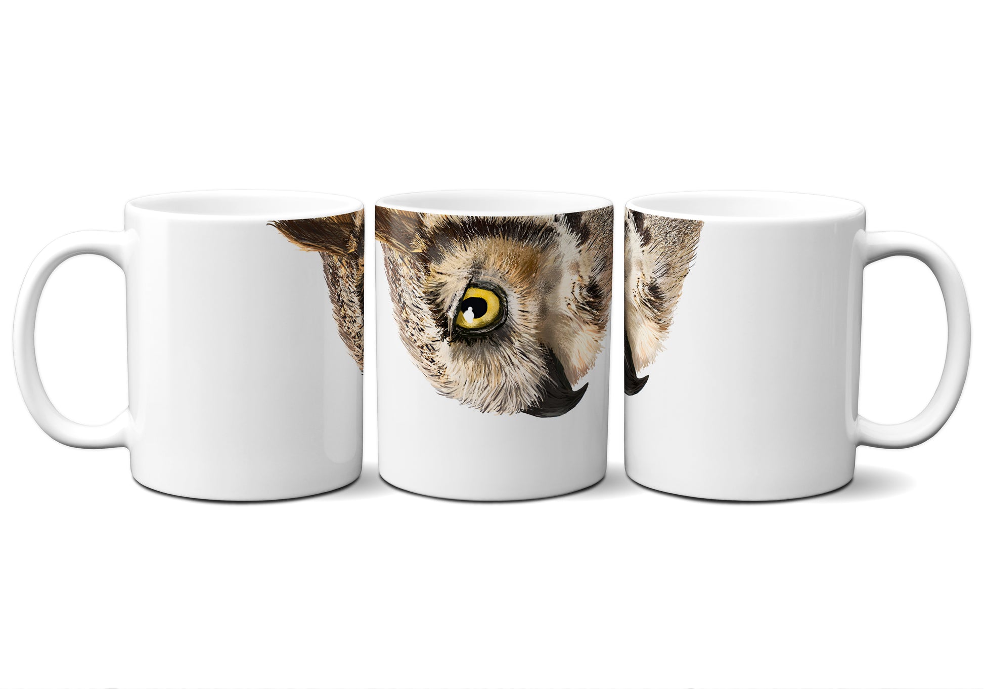 Bring a touch of the wild into your life with the Great Horned Owl by Snout Mugs®.