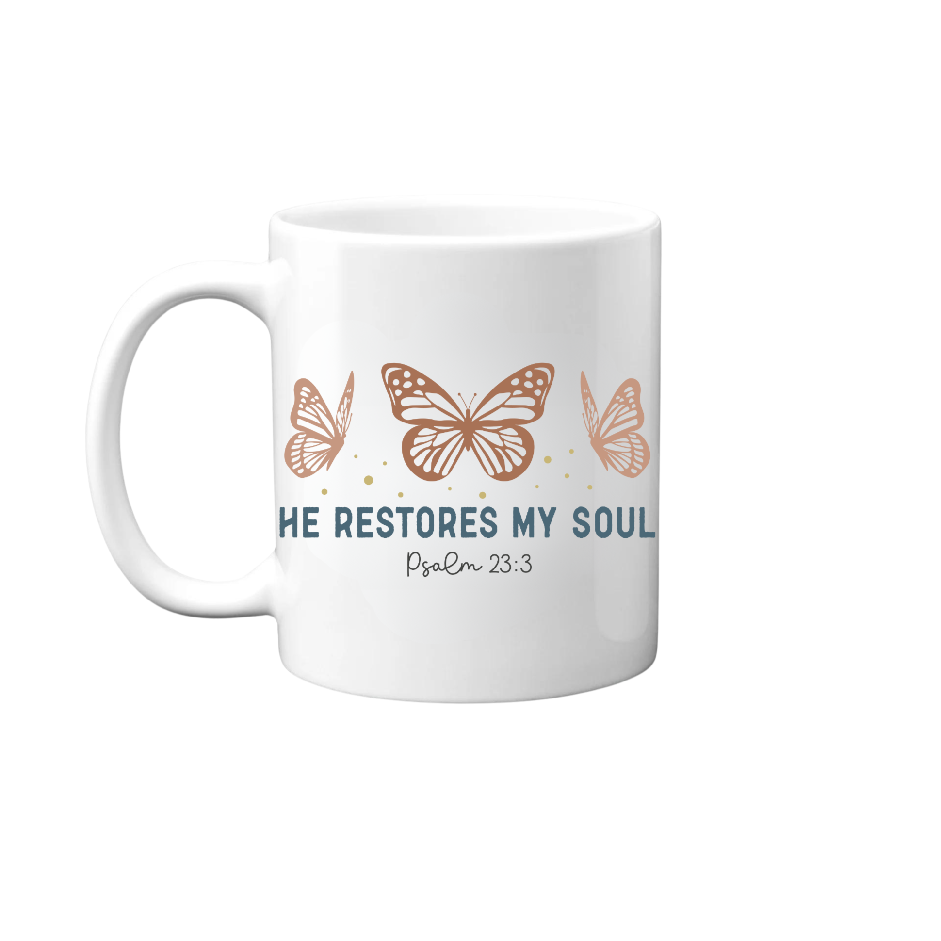 He Restores My Soul Psalm 23:3 Butterfly Mug