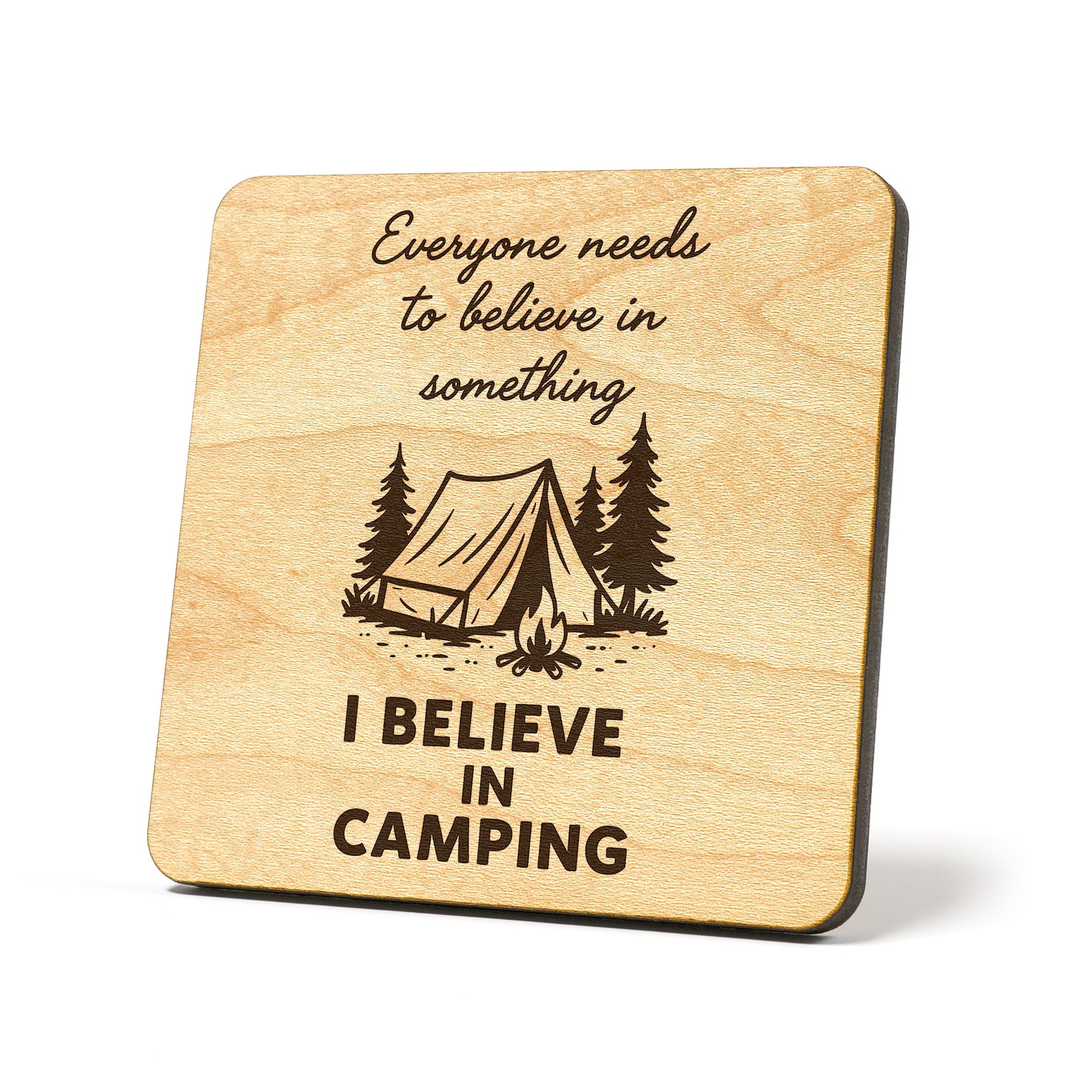 Reconnect with what truly grounds you with our “I Believe in Camping” Magnetic Coaster. A simple reminder that sometimes, belief isn’t found in grand gestures but in quiet nights under the stars and the steady crackle of a campfire. Let this piece bring a sense of peace and perspective to your daily routine—whether it’s holding your morning coffee or resting beside your favorite reading chair.