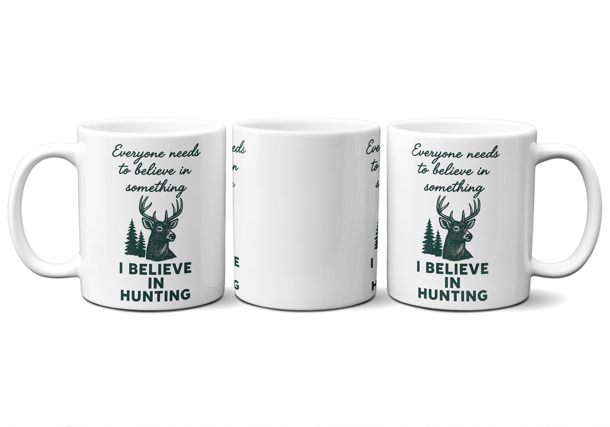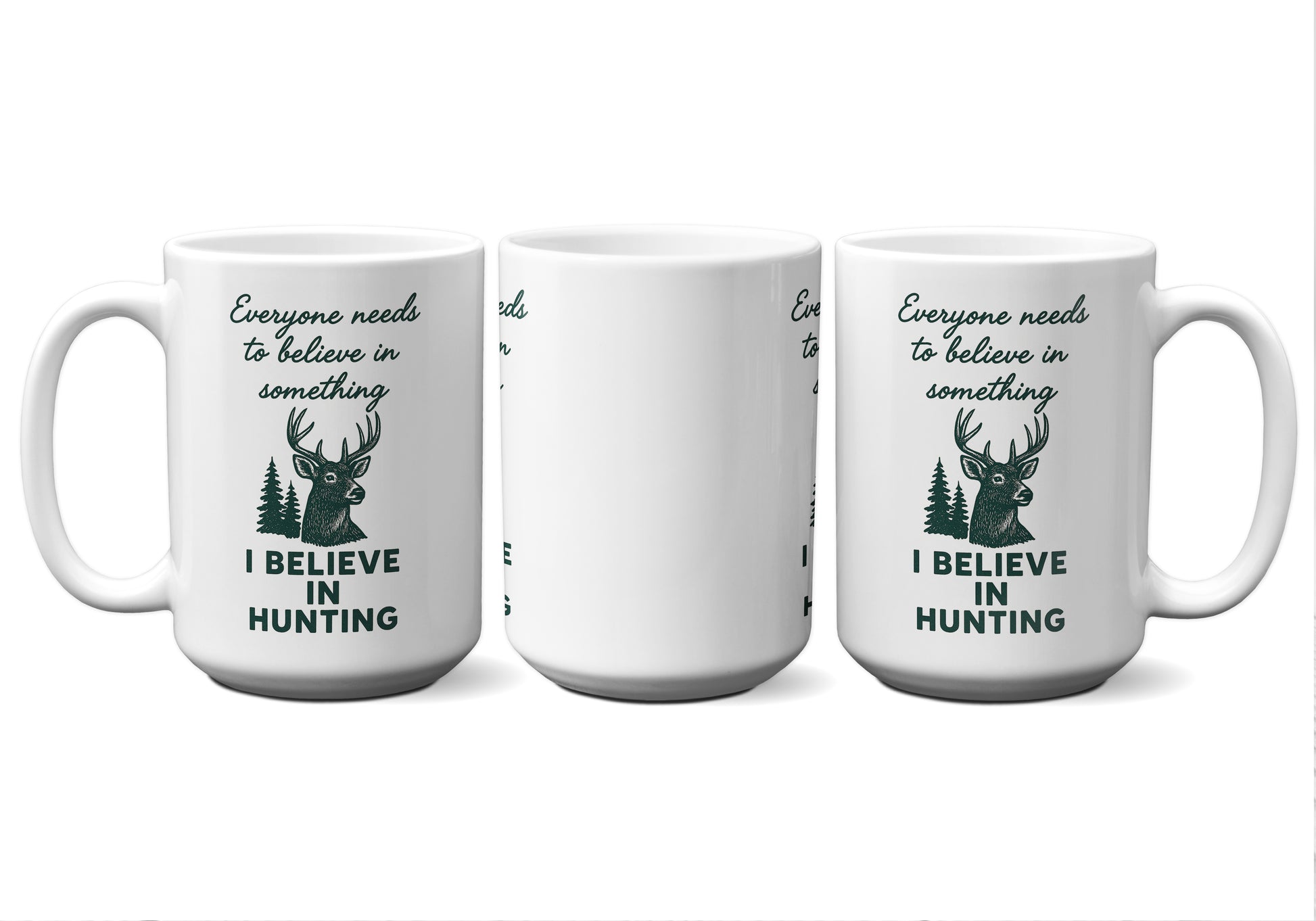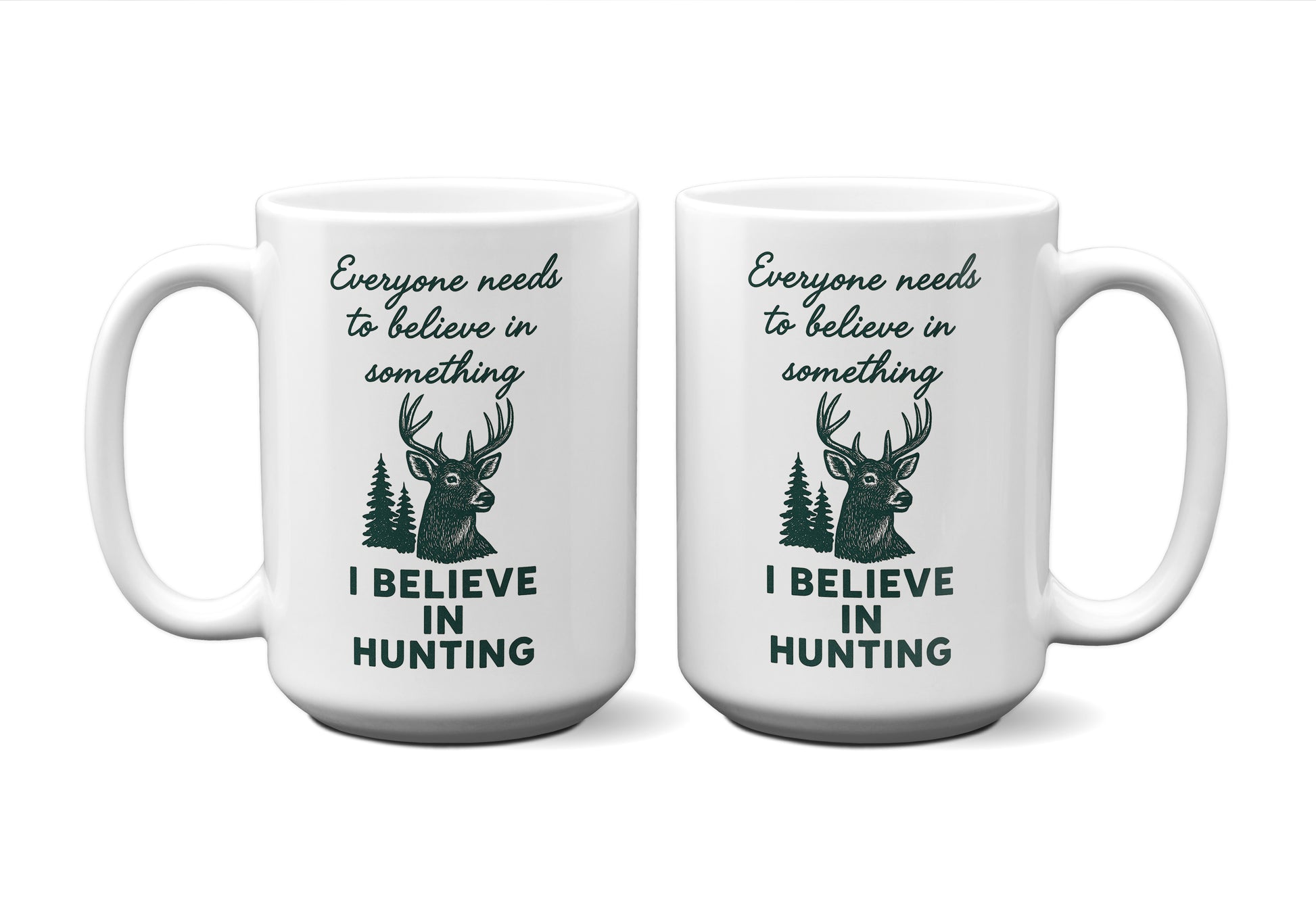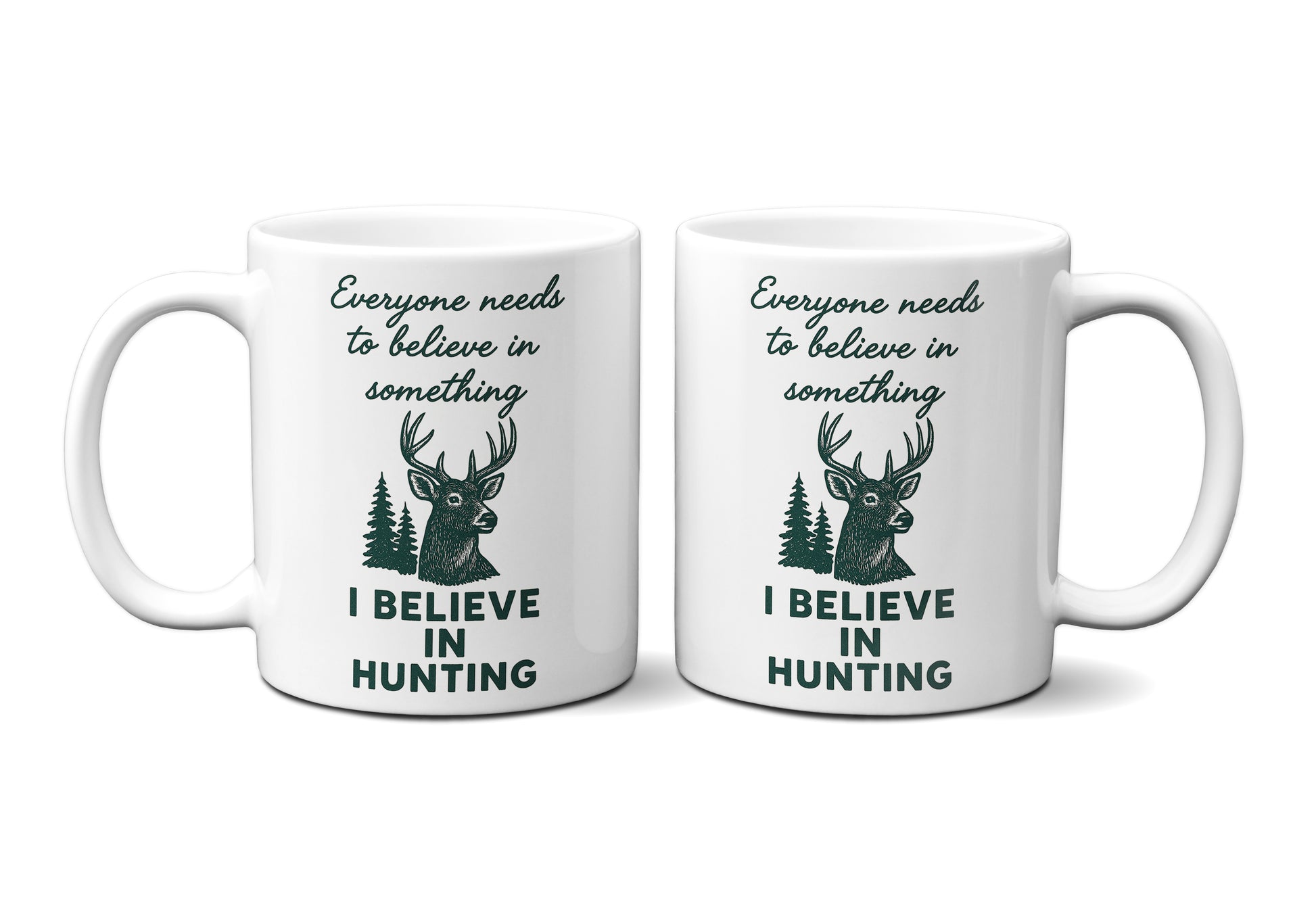 Celebrate the stillness of the woods and the spirit of the outdoors with our “I Believe in Hunting” Graphic Mug. Featuring a bold buck design surrounded by evergreens, this mug captures the quiet focus, respect, and patience that define every true hunter. It’s a reminder that belief can be found not just in the pursuit—but in the moments of calm before the dawn.