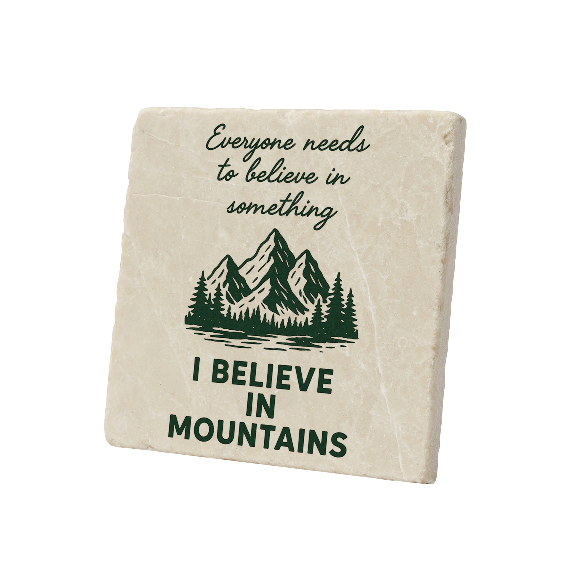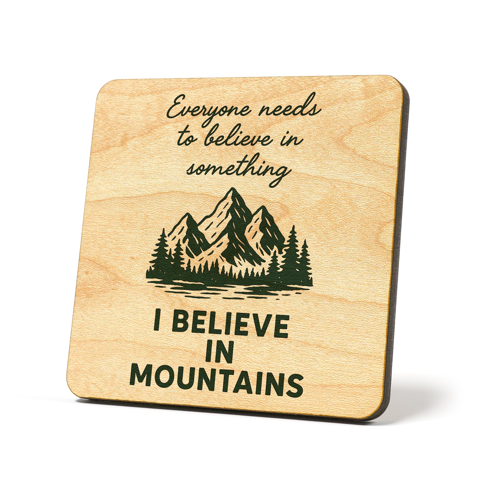 Stand tall and stay grounded with the I Believe in Mountains Graphic Coaster.
