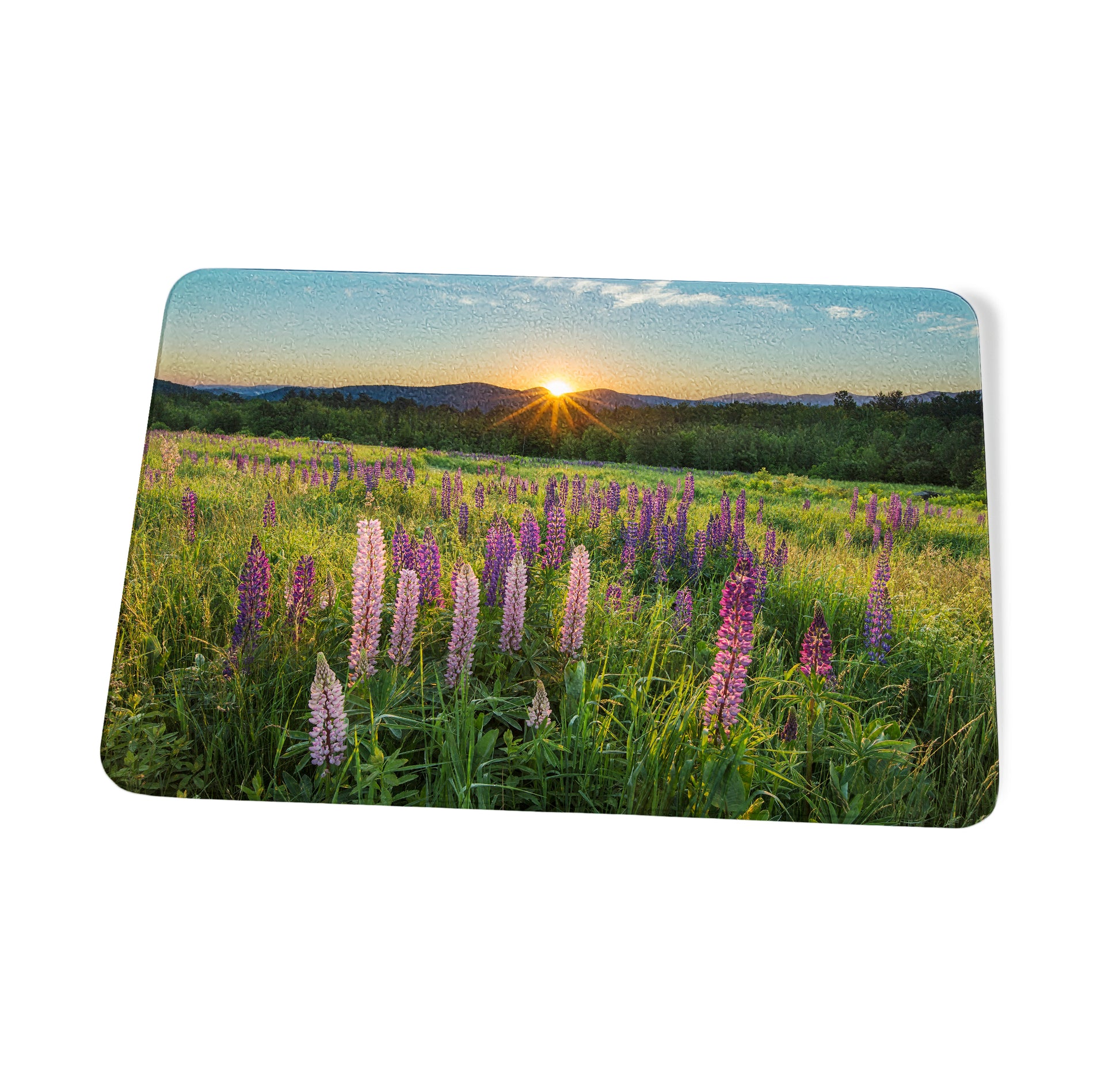 The rising sun lights up a field of lupine blooms in Sugar Hill, New Hampshire.