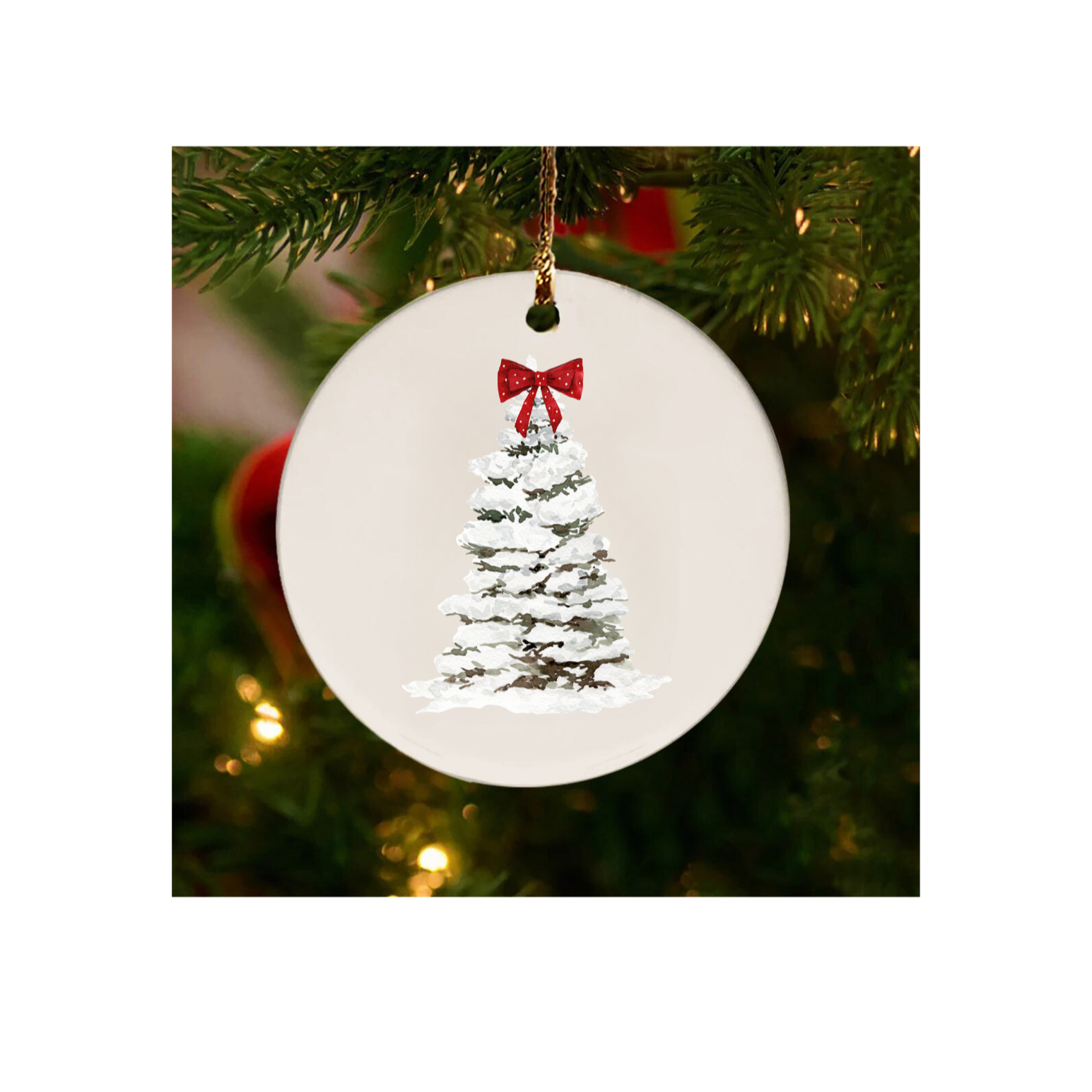 This 3" round ceramic ornament is the perfect addition to any holiday tree! With our ceramic ornaments, we are pleased to offer you a gift box at no additional charge. It's a cute brown box tied with a silver ribbon - super cute for Christmas!