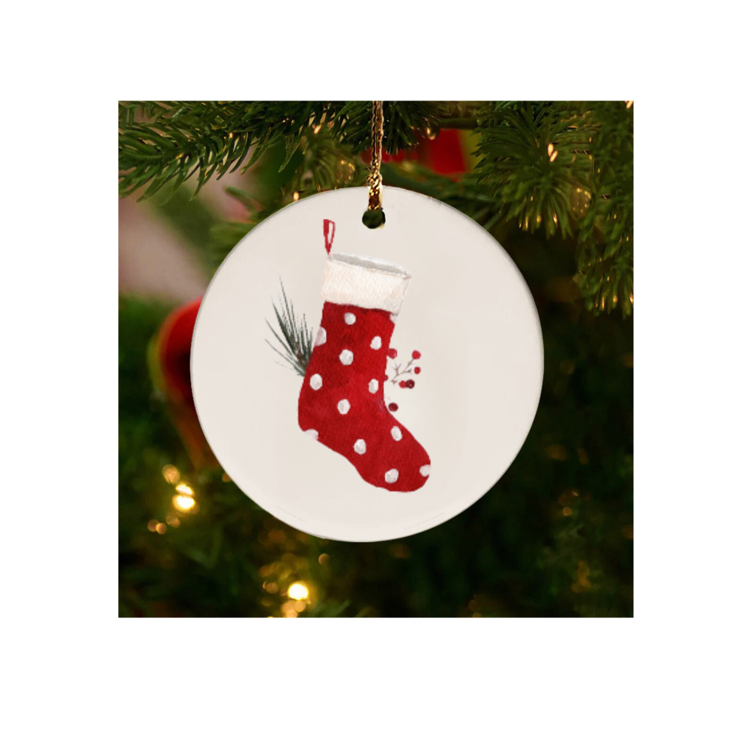 This 3" round ceramic ornament is the perfect addition to any holiday tree! With our ceramic ornaments, we are pleased to offer you a gift box at no additional charge. It's a cute brown box tied with a silver ribbon - super cute for Christmas!