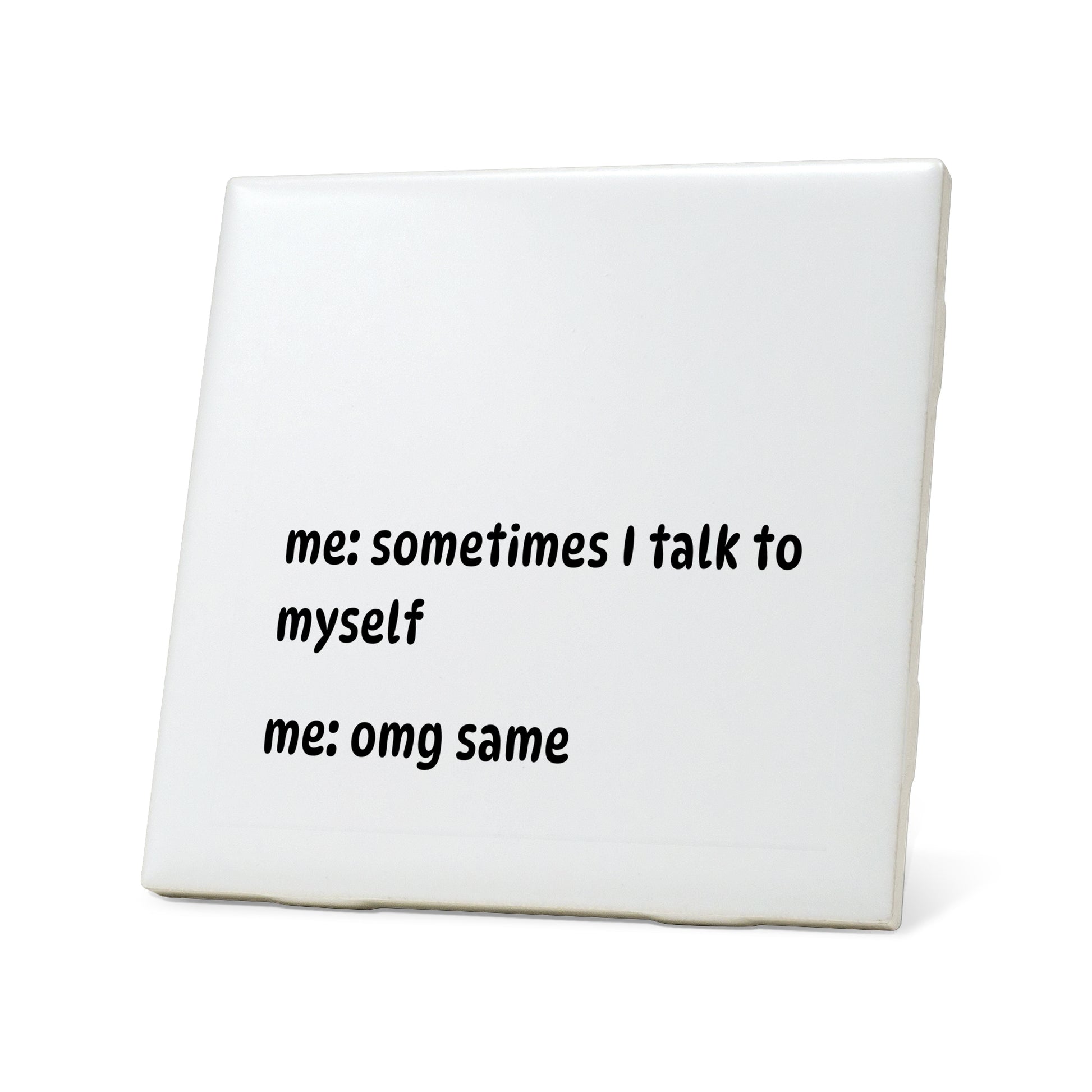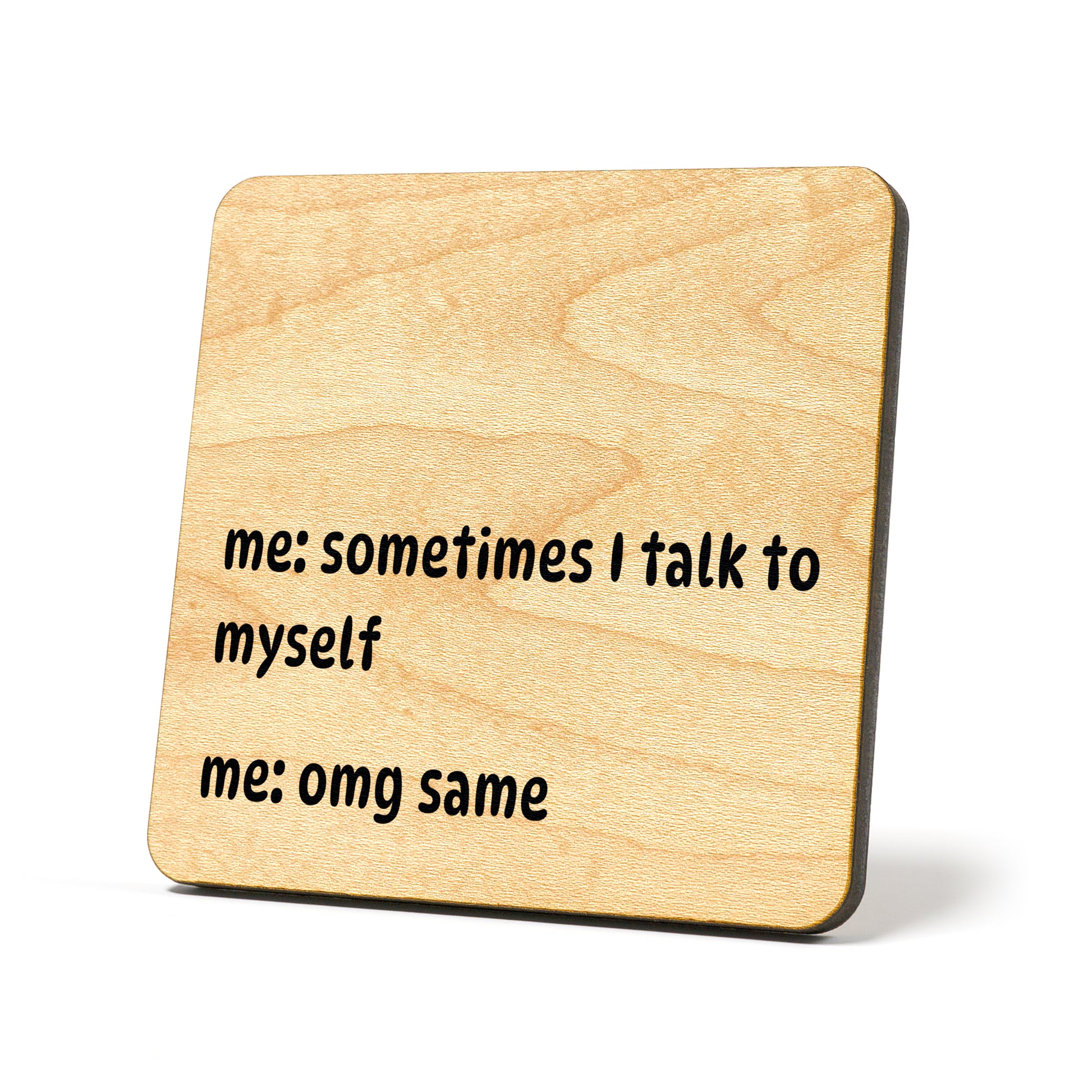 Wood has a satin finish with a magnet backing which can be used as a coaster or a magnet. Dimensions: 3.5" x 3.5"
